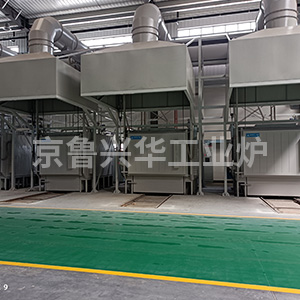 加熱元件由電熱合金絲繞制成螺旋狀,安置在爐膛兩側(cè)及底部臺車的擱絲磚上。臺車上的加熱元件通過拖纜軟線接到箱體前段電源上。臺車的爐襯上放置著耐熱鋼鑄成的爐底板,用來放置工件。
